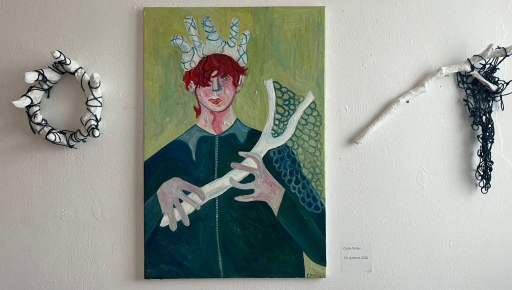 net: foraged branch, modroc, white gesso, garden twine